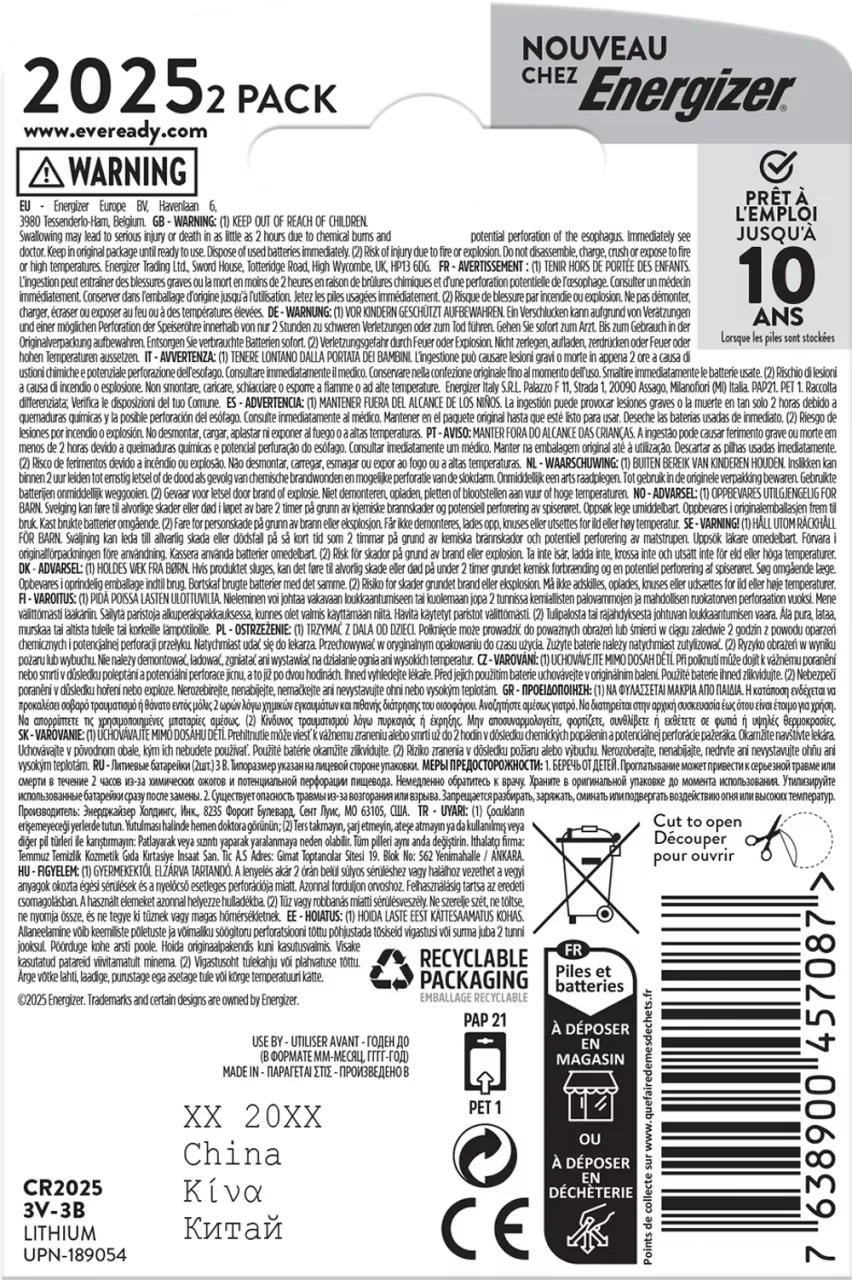 BATERIA EVEREADY SPECJALISTYCZNA CR2025 /2