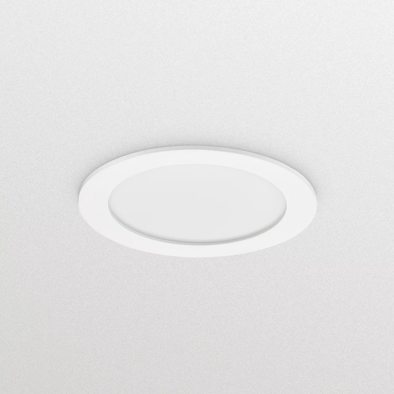 D155 mm, Odlew aluminiowy, Biel, Drogowy biały (RAL9016), Zewnętrzny zasilacz zinterfejsem DALI, 1100 lm, 13 W, 85 lm/W, 3000 K, (0.43657,0.40454) SDCM3, CRI80, Kąt rozsyłu światła 90°, Opalizowany, Polistyren, IP20/44 | Ochrona przed dotknięciem palcem; ochrona przed przewodami, bryzgoodporne, IK02 | 0,2 J standardowa, Klasa bezpieczeństwa II, Terminal przyłączeniowy 2-biegunowy