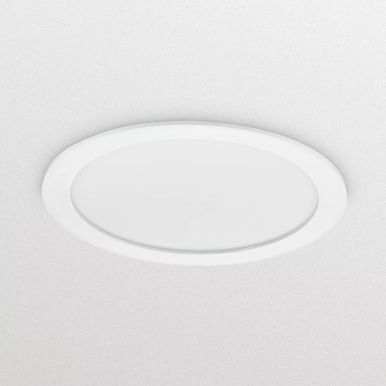 D205 mm, Odlew aluminiowy, Biel, Drogowy biały (RAL9016), Zewnętrzny zasilacz zinterfejsem DALI, 2100 lm, 22.5 W, 93 lm/W, 4000 K, (0.38212,0.38031) SDCM3, CRI80, Kąt rozsyłu światła 90°, Opalizowany, Polistyren, IP20/44 | Ochrona przed dotknięciem palcem; ochrona przed przewodami, bryzgoodporne, IK02 | 0,2 J standardowa, Klasa bezpieczeństwa II, Terminal przyłączeniowy 2-biegunowy