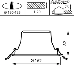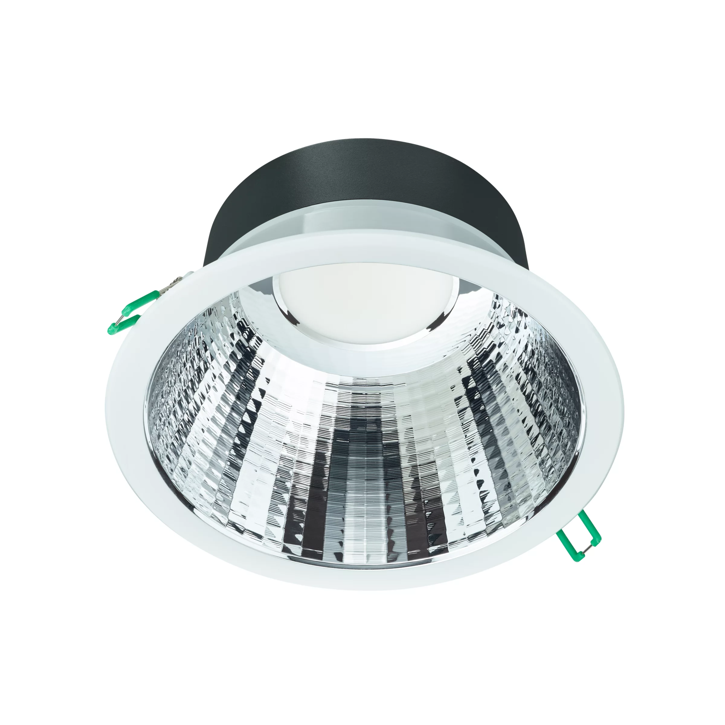 D150 mm, poliwęglan, Biel, Czysta biel (RAL9010), Zewnętrzny zasilacz zinterfejsem DALI, 1000 lm, 10.7 W, 107 lm/W, 3000 K, (0.432,0.404) SDCM≦5, UGR19, Odbłyśnik fasetonowy, Odbłyśnik fasetonowy, poliwęglan, IP20 | Ochrona przed dotknięciem palcem, IK02 | 0,2 J standardowa, Klasa bezpieczeństwa II, 2 przewody 0,15m ze złączką 2-biegunową