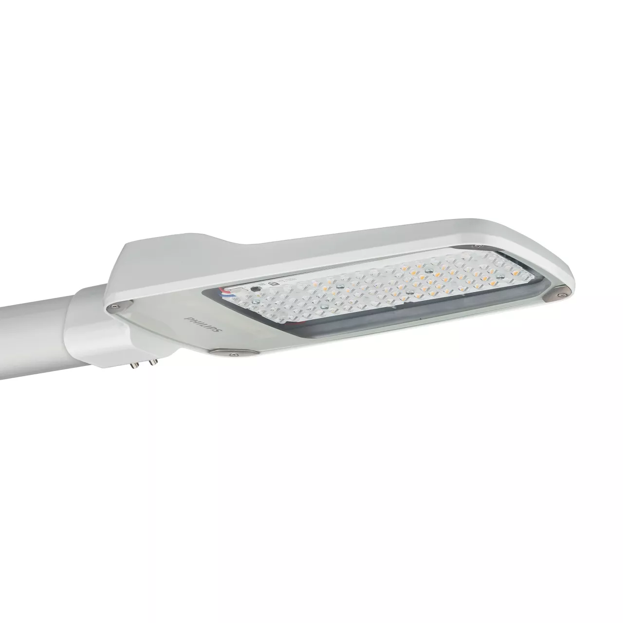 Road & street light, Odlew aluminiowy, Szary, Zasilacz (wł./wył.), 9680 lm, 69 W, 140 lm/W, 4000 K, (0.41, 0.39) SDCM ≤5, CRI70, Średni rozsył, IP65 | Zabezpieczone przed przenikaniem kurzu, strugoodporne, IK08 | 5 J ochrona przed wandalami, Klasa bezpieczeństwa II, Poziom ochrony przeciwprzepięciowej do 4 kV w trybie różnicowym i 4 kV w trybie wspólnym, Szybkozłączka ze zwolnieniem napięcia