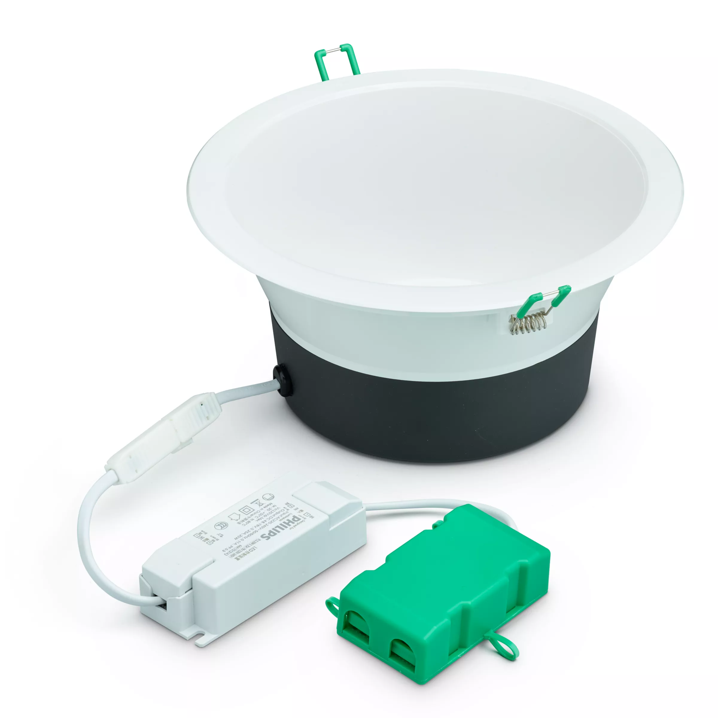 Philips CoreLine Downlight wyróżnia się innowacyjną konstrukcją, łatwością obsługi i wysoką jakością — tak jak inne wbudowywane oprawy oświetleniowe z linii CoreLine. Oprawy z serii CoreLine Downlight pozwalają bezpośrednio zastąpić konwencjonalne oprawy oświetleniowe, a ich atrakcyjny całkowity koszt posiadania (TCO) ułatwia klientom przejście na technologię LED. Te wbudowywane oprawy wewnętrzne typu downlight zapewniają równomierny rozsył światła do zastosowań w oświetleniu ogólnym i biurowym (URG19). Zapewniają również natychmiastową oszczędność energii i mają znacznie dłuższą trwałość użytkową, co sprawia, że są one rozwiązaniem zarówno opłacalnym, jak i przyjaznym dla środowiska. Wbudowywane oprawy typu downlight CoreLine DN142B są łatwe w montażu dzięki standardowym wymiarom wycięcia i szybkozłączkom. Dostępna jest również opcja Interact Ready z wbudowaną łącznością bezprzewodową, która może być używana z bramkami, czujnikami i oprogramowaniem Interact.