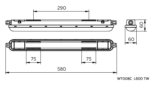 Oprawa hermetyczna PILA WT008C przelotowa 18W 2000lm 4000K 20S/840 PSU L600 TW CLASSIC 2 lata gwar