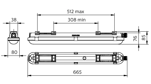 L600 mm, poliwęglan, Szary, Zasilacz (wł./wył.), 4000 lm, 25 W, 160 lm/W, 4000 K, (0.38,0.38) SDCM≤3, Symetryczna, Przezroczyste, poliwęglan, IP65 | Zabezpieczone przed przenikaniem kurzu, strugoodporne, IK08 | 5 J ochrona przed wandalami, Klasa bezpieczeństwa I, Szybkozłączka 3-biegunowa