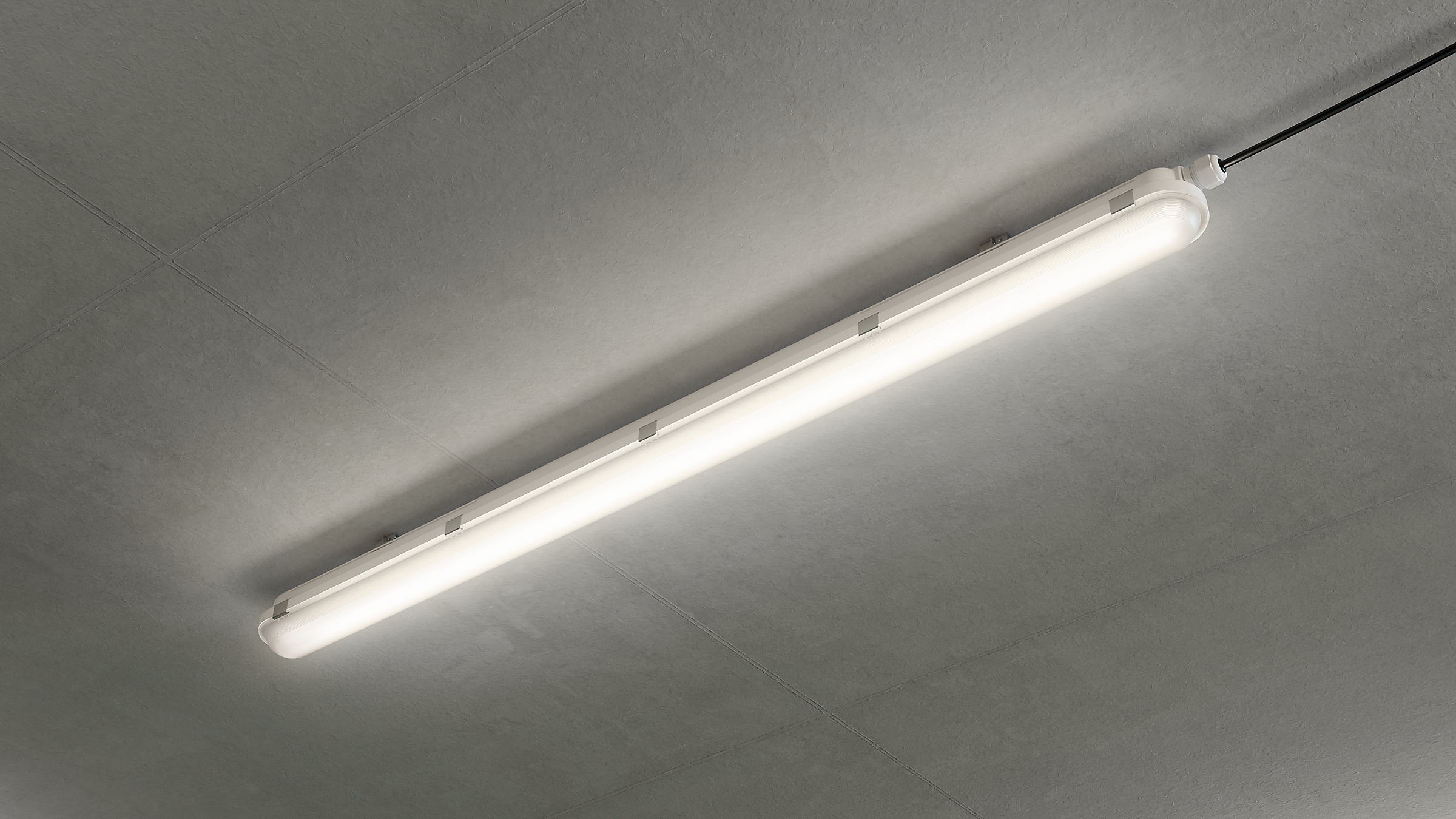 L600 mm, poliwęglan, Szary, Zasilacz (wł./wył.), 1900 lm, 15 W, 126 lm/W, 126 lm/W, 4000 K, (0.38,0.38)SDCM=3, Szeroki rozsył światła, Matowe, poliwęglan, IP65 | Zabezpieczone przed przenikaniem kurzu, strugoodporne, IK08 | 5 J ochrona przed wandalami, Klasa bezpieczeństwa I, Szybkozłączka 3-biegunowa, Moduł Simple Connection i zdejmowana osłona dostępne dla okablowania przelotowego 1-fazowego (bez okablowania wewnętrznego)