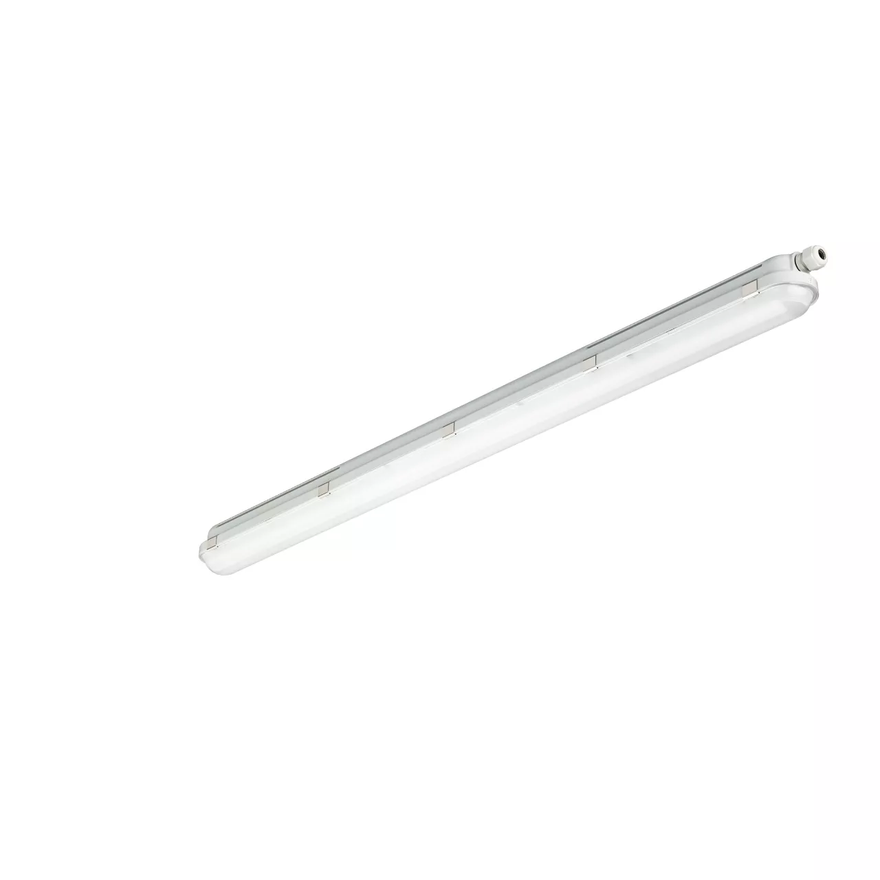 L1200 mm, poliwęglan, Szary, Zasilacz (wł./wył.), 2700 lm, 20.5 W, 131 lm/W, 131 lm/W, 4000 K, (0.38,0.38)SDCM=3, Szeroki rozsył światła, Matowe, poliwęglan, IP65 | Zabezpieczone przed przenikaniem kurzu, strugoodporne, IK08 | 5 J ochrona przed wandalami, Klasa bezpieczeństwa I, Szybkozłączka 3-biegunowa, Moduł Simple Connection i zdejmowana osłona dostępne dla okablowania przelotowego 1-fazowego (bez okablowania wewnętrznego)