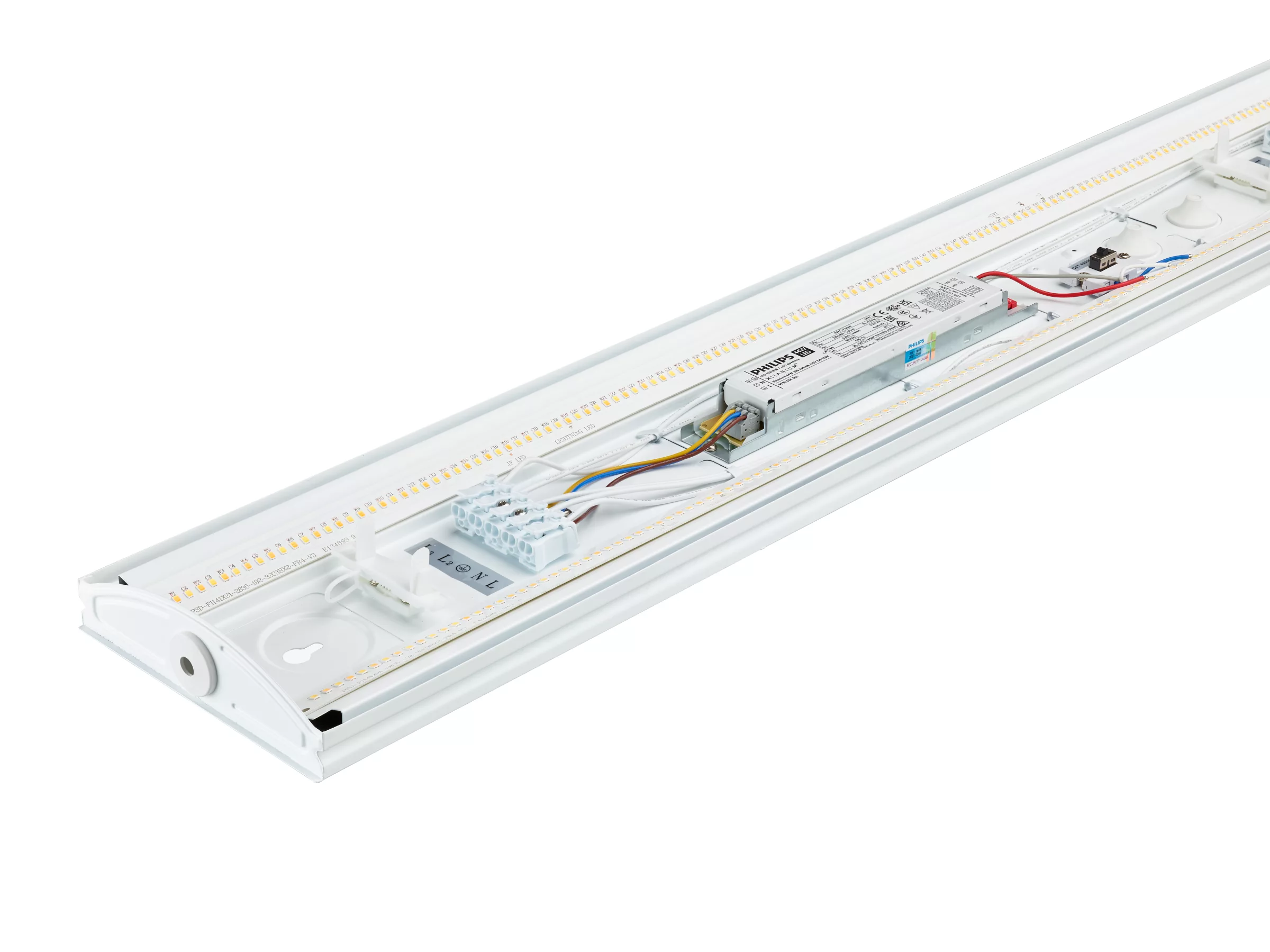 Philips CoreLine FastSet to energooszczędny bezpośredni zamiennik LED konwencjonalnych wodoszczelnych lamp wewnętrznych o stopniu ochrony IP44. Dzięki mocnym strumieniom świetlnym identycznym jak w przypadku oświetlenia fluorescencyjnego nie ma potrzeby wykonywania nowych obliczeń oświetlenia dla projektów modernizacyjnych — kompleksowa konstrukcja umożliwia przełączanie się między skorelowanymi temperaturami barwowymi (CCT) a mocnym strumieniem świetlnym w tej samej oprawie zależnie od potrzeb. Instalacja tych opraw wodoszczelnych opraw LED o stopniu ochrony IP44 jest szybka i elastyczna dzięki możliwości wyboru prostej przelotki lub wejścia przewodu z boku lub z tyłu oprawy. Oznacza to, że wodoodporne oświetlenie wewnętrzne CoreLine FastSet IP44 można łatwo zamontować jako samodzielną oprawę, bezpośrednio na ścianie lub za pomocą wsporników. Można je łatwo podłączyć do innych opraw CoreLine FastSet, aby stworzyć harmonijne linie światła. Jak można się spodziewać po firmie Philips, każda oprawa CoreLine FastSet zapewnia bezpieczeństwo. Stopień ochrony IP44 i IK06 nie tylko zapewnia ochronę przed przypadkowym uderzeniem, ale także zatrzaski zabezpieczające na osłonie oprawy zapobiegają jej upadkowi. Opcje Interact Ready są dostępne dla inteligentnych zastosowań oświetleniowych. Dzięki wodoodpornym lampom LED CoreLine FastSet IP44 masz idealne rozwiązanie do obszarów o dużym natężeniu ruchu, takich jak garaże parkingowe, pralnie i oświetlenie klatek schodowych.