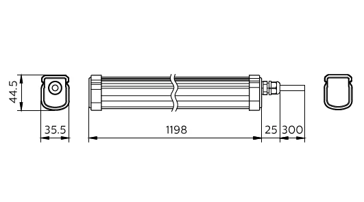 Waterproof, L1200 mm, poliwęglan, Ciemnoszary, Zasilacz (wł./wył.), 4800 lm, 38 W, 125 lm/W, 4000 K, (0.38, 0.38),SDCM≤6, Symetryczna, Opalizowany, poliwęglan, IP65 | Zabezpieczone przed przenikaniem kurzu, strugoodporne, IK06 | 1 J, Klasa bezpieczeństwa II, Przewód 0,3m bez wtyczki, Przewody/kable przyłączeniowe