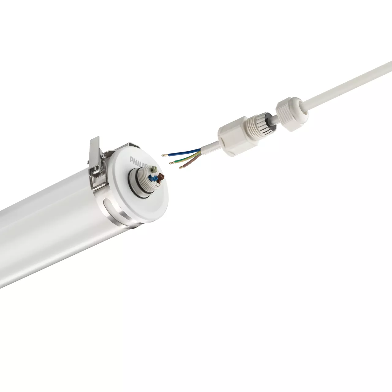 L1500 mm, Plastik, Biel, Zasilacz (wł./wył.), 3900 lm, 28 W, 139 lm/W, 4000 K, (0.38,0.38)SDCM3, Bardzo szeroki rozsył światła, Opalizowany, Polimetakrylan metylu, IP69K | Zabezpieczone przed przenikaniem kurzu, ciśnieniowo szczelne 80°C, IK06 | 1 J, Klasa bezpieczeństwa I, Szybkozłączka 3-biegunowa, Okablowanie przelotowe 1-fazowe