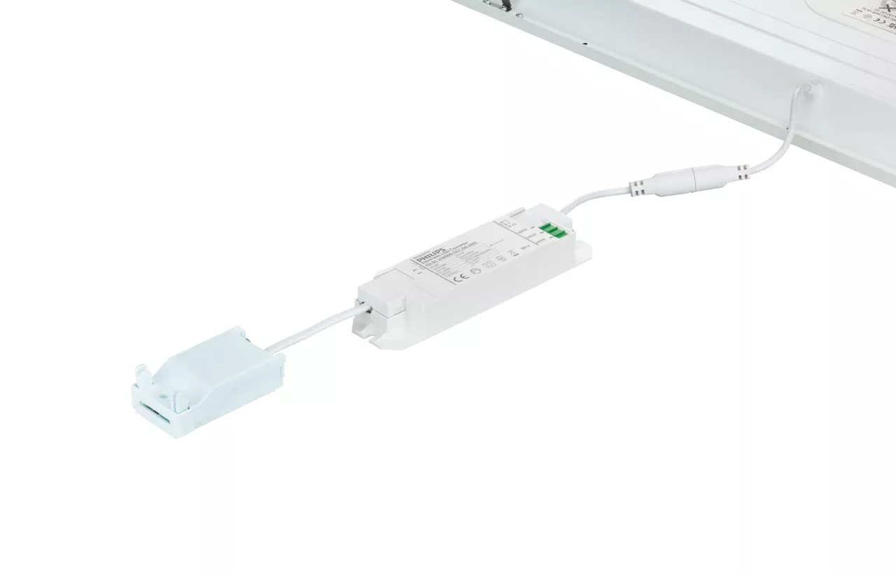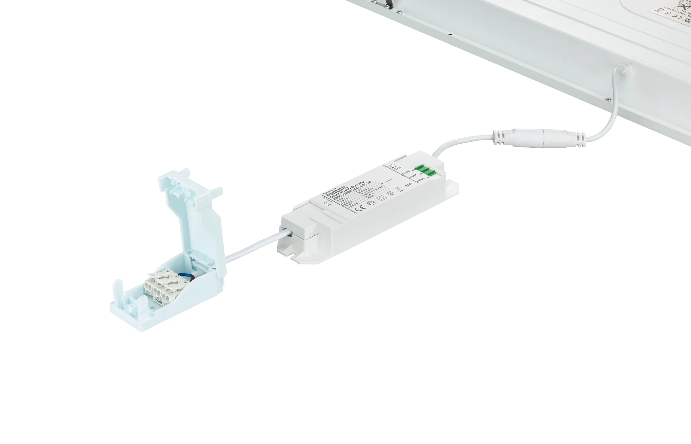 600x600 mm, Visible profile ceiling version, Stal, Biel, Sygnałowy biały (RAL9003), Zewnętrzny zasilacz (wł./wył.), All-in, Multi Color Temperature, 3400 lm, 3600 lm, 28 W, 120 lm/W, 113 lm/W, 3000 K, 4000 K, (0.43, 0.40) SDCM ≤5 ; (0.38, 0.38) SDCM ≤5, UGR19, Kąt rozsyłu światła 90°, Soczewka mikropryzmatyczna, Akrylowe, IP20/40 | Ochrona przed dotknięciem palcem; ochrona przed przewodami, IK02 | 0,2 J standardowa, Klasa bezpieczeństwa II, Szybkozłączka 2-biegunowa, SC | Linka zabezpieczająca