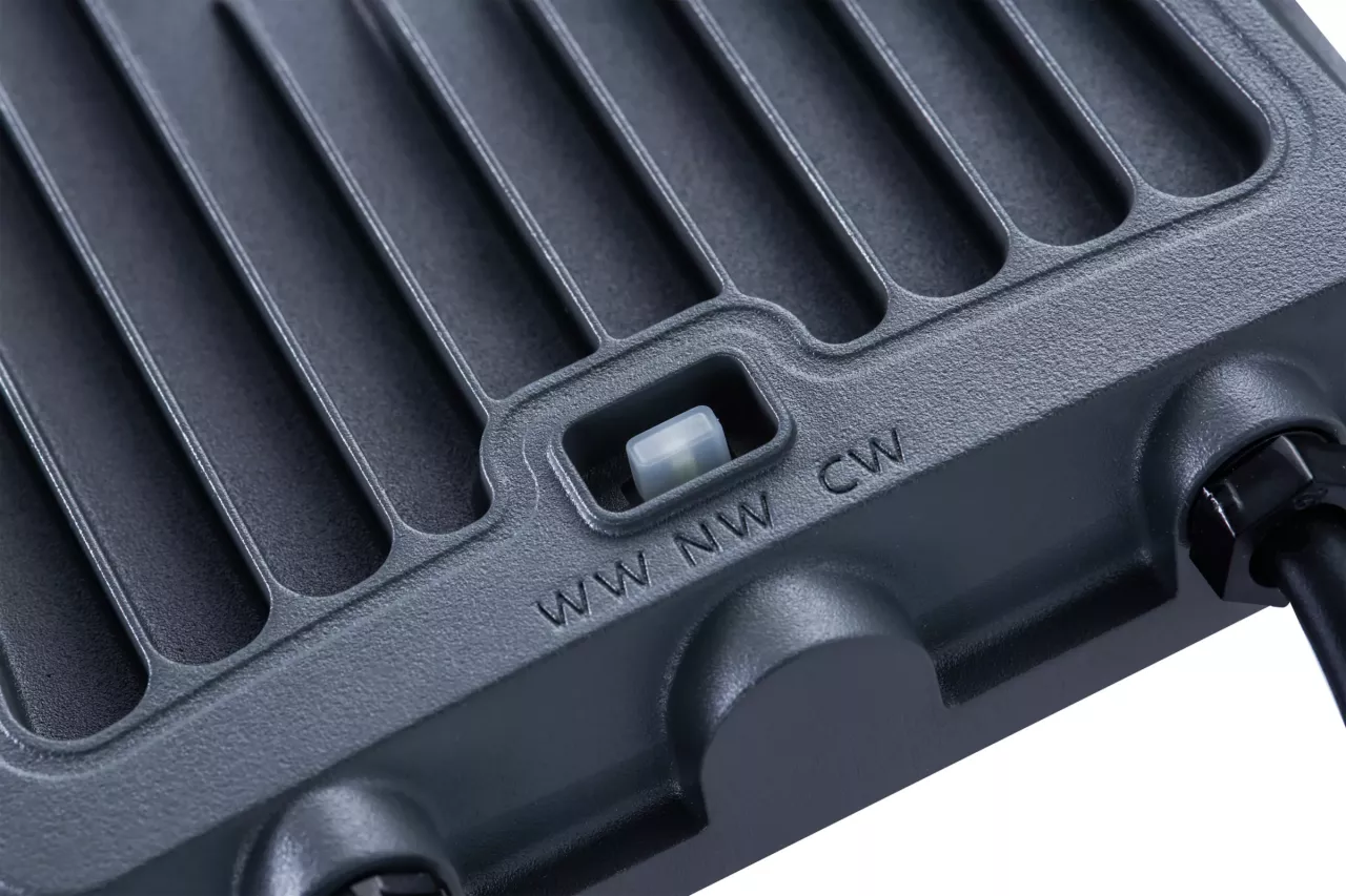Naświetlacze Ledinaire "all-in-one", Odlew aluminiowy, Szary, Drogowy szary B (RAL7043), Jednowarstwowe malowanie proszkowe, Sterownik zintegrowany z tablicą LED (DoB), All-in, Multi Color Temperature, 16500 lm, 18000 lm, 150 W, 120 lm/W, 110 lm/W, 3000 K, 4000 K, 6500 K, (0.440,0.403); (0.369,0.364); (0.313,0.337) SDCM5, CRI80, Symetryczna, IP65 | Zabezpieczone przed przenikaniem kurzu, strugoodporne, IK08 | 5 J ochrona przed wandalami, Klasa bezpieczeństwa I, Poziom ochrony przeciwprzepięciowej do 1,5 kV w trybie różnicowym i 1,5 kV w trybie wspólnym, Przewód 2,0m bez wtyczki, Przewody/kable przyłączeniowe