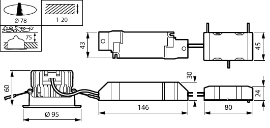| Maks. liczba opraw na wyłącznik nadprądowy B16: | 24 |