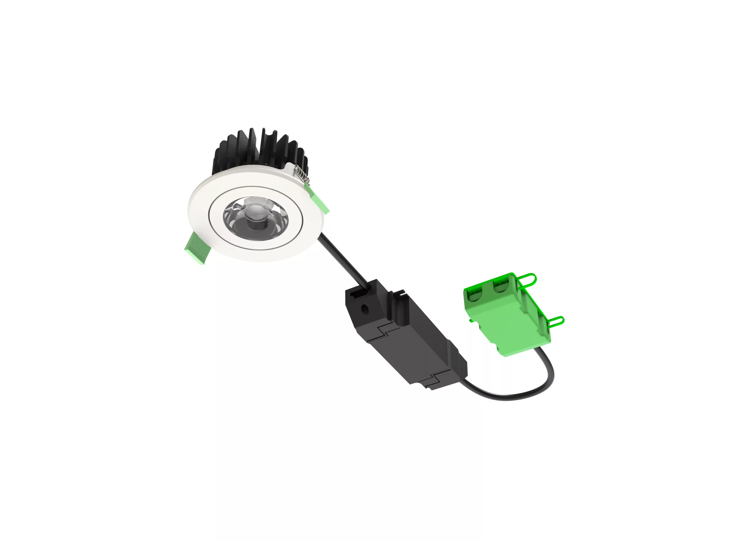 CoreLine Recessed Spot gen2, Adjustable, D78 mm, Odlew aluminiowy, Biel, Obsługa systemu Interact ze sterownikiem bezprzewodowym (zewnętrzny), 1200 lm, 12 W, 100 lm/W, 4000 K, (0.38, 0.38) SDCM 5, Szeroki rozsył światła, poliwęglan, IP20/44 | Ochrona przed dotknięciem palcem; ochrona przed przewodami, bryzgoodporne, IK03 | 0,3 J, Klasa bezpieczeństwa II, Przewód 0,25m ze złączką 3-biegunową, Szybkozłączka 3-biegunowa