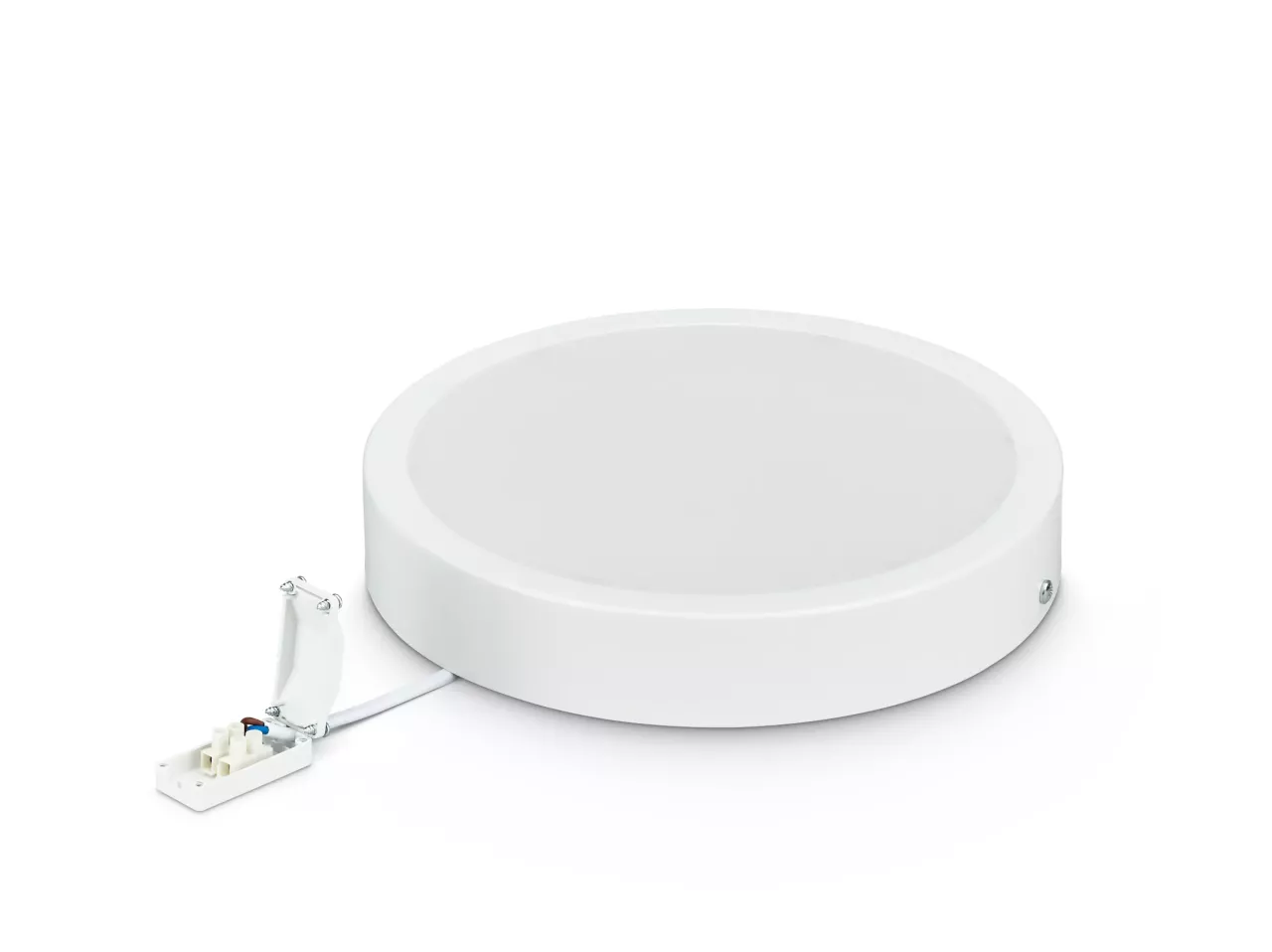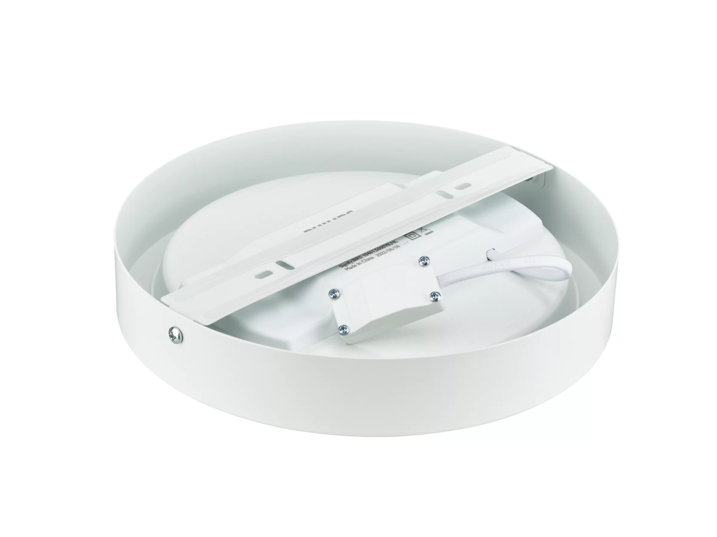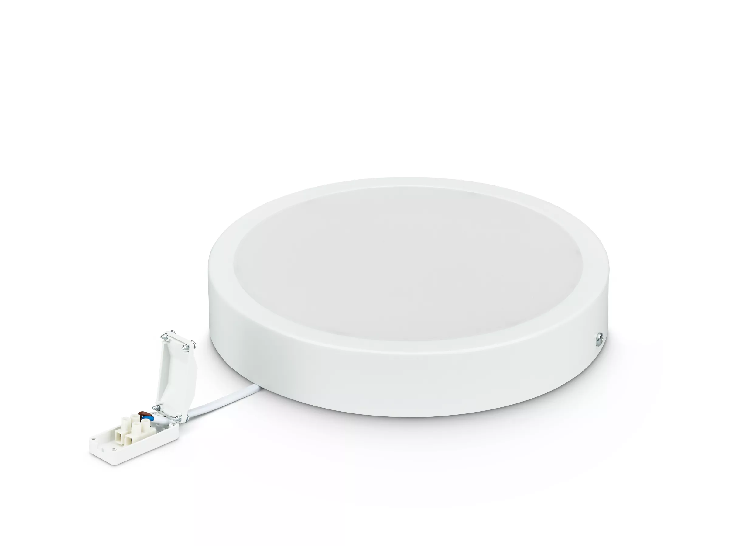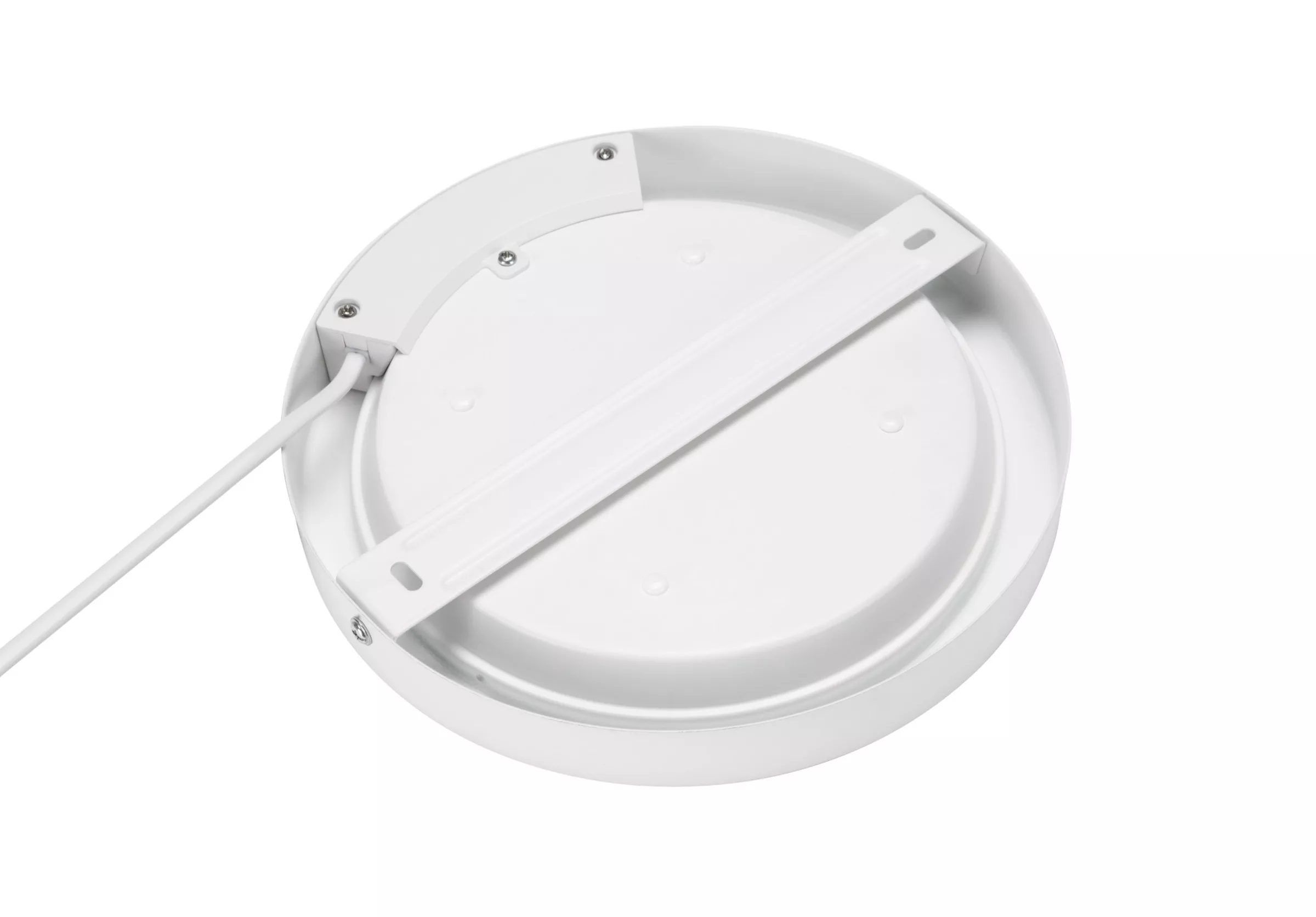 Surface-mounted, D225 mm, Metal/plastik, Biel, Zasilacz (wł./wył.), 2000 lm, 19 W, 105 lm/W, 3000 K, (0.44, 0.403) SDCM≤5, Kąt rozsyłu światła 110°, IP20/40 | Ochrona przed dotknięciem palcem; ochrona przed przewodami, IK03 | 0,3 J, Klasa bezpieczeństwa II, Blokowa złączka śrubowa 2-biegunowa