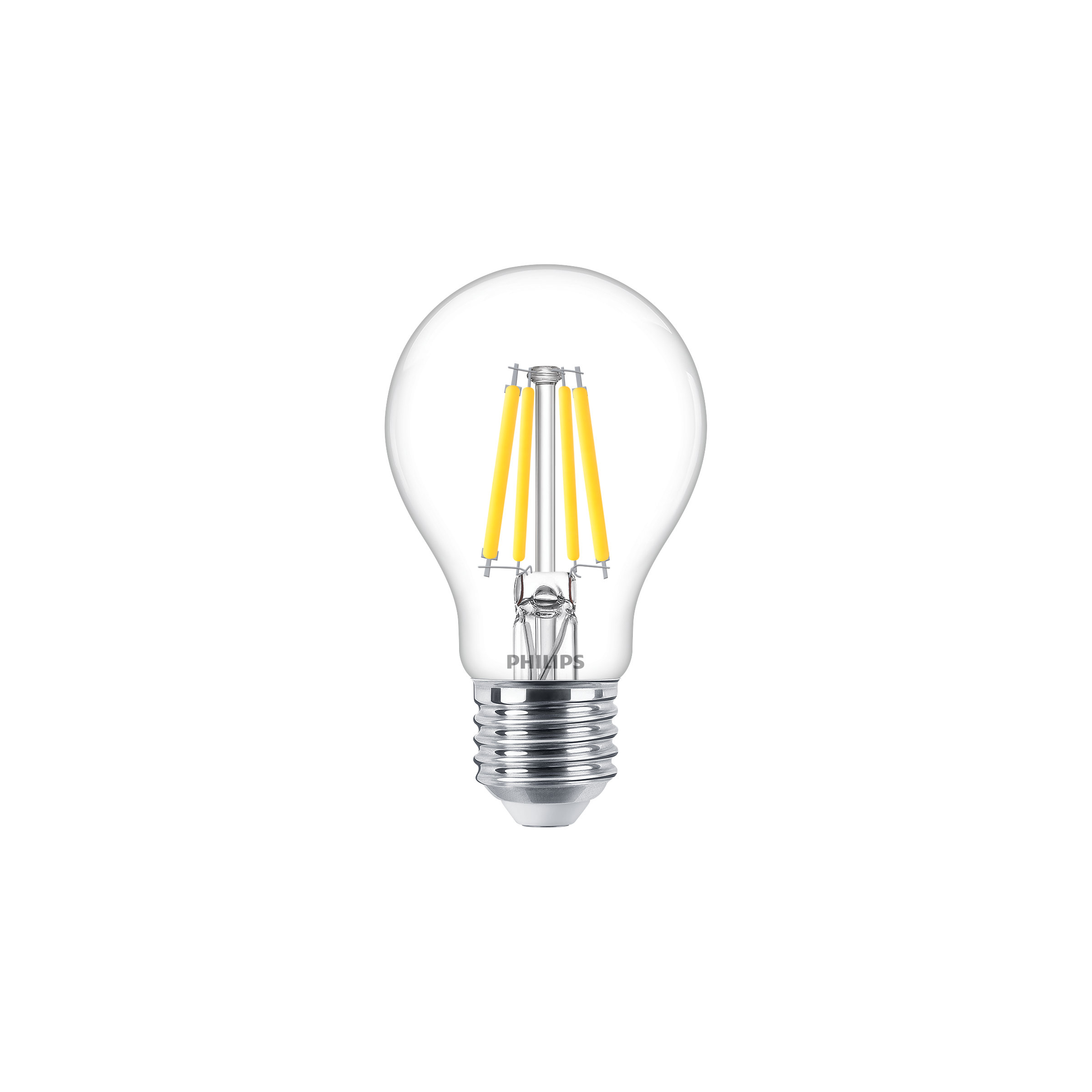 Te żarówki LED z klasycznym żarnikiem łączą tradycyjne, dobrze znane wzornictwo i kształt szklanej żarówki z trwałością oraz korzyściami, jakie zapewnia technologia LED. Szklane żarówki LED MASTER Value zapewniają większą oszczędność energii niż zwykłe szklane żarówki LED. Jednocześnie gwarantują doskonałe oświetlenie i możliwość przyciemniania światła (szklane żarówki LED z funkcją ściemniania). Szklane żarówki LED MASTER Value pozwalają znacząco obniżyć zużycie energii — nawet o 30% w stosunku do zwykłych źródeł światła LED. Dzięki żywotności 15000 godzin koszt utrzymania tych żarówek LED z funkcją ściemniania jest też niższy.