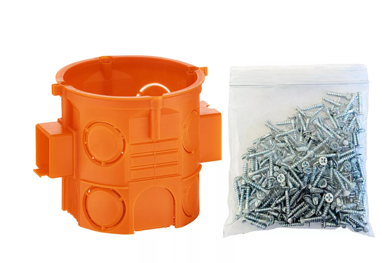 S60DFWw pomarańczowy_Puszka podtynkowa 60 mm, głęboka, szeregowa, z wkrętami w woreczku
