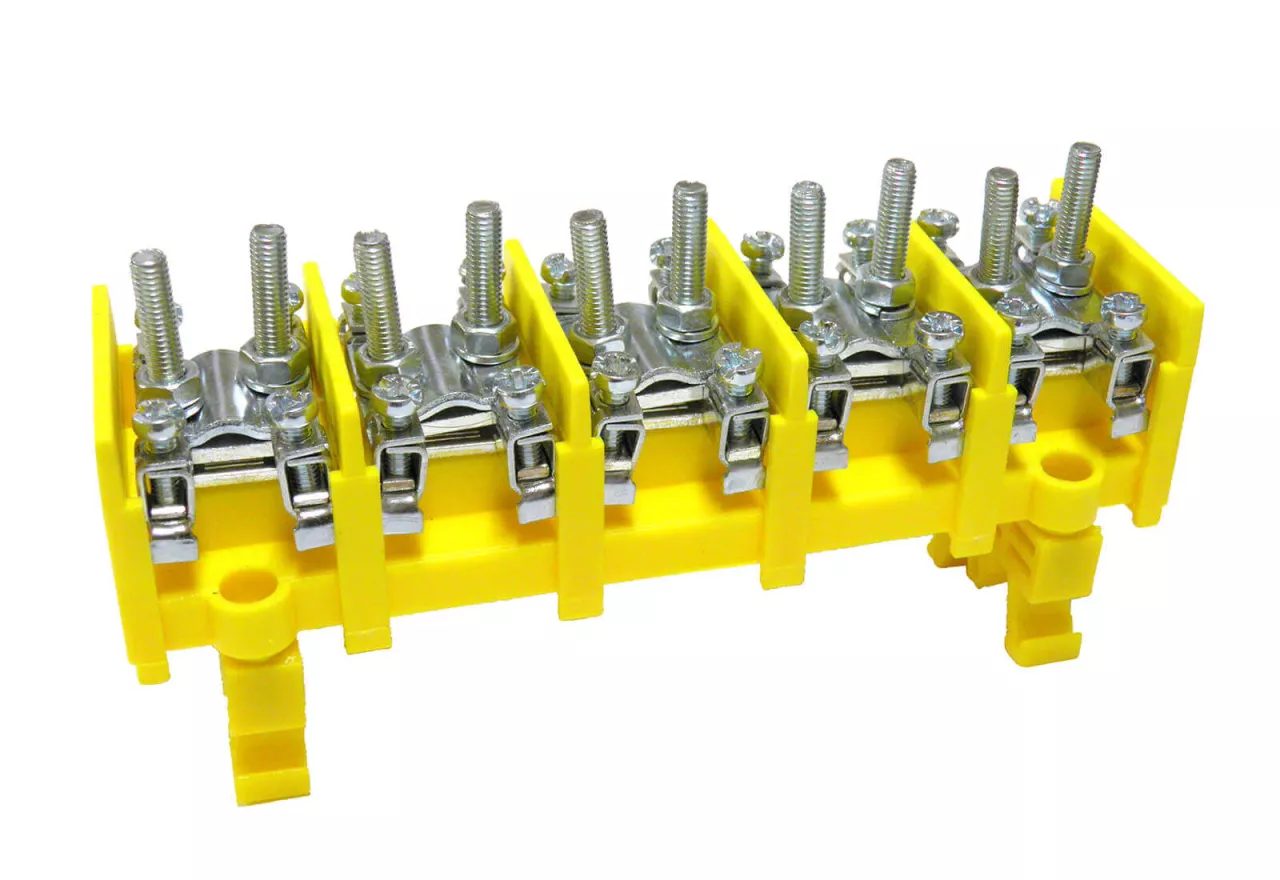 LZ 5*25/10wyk.22 żółty_Odgałęźnik instalacyjny 5-torowy 2x25²/4x10², na TS 35