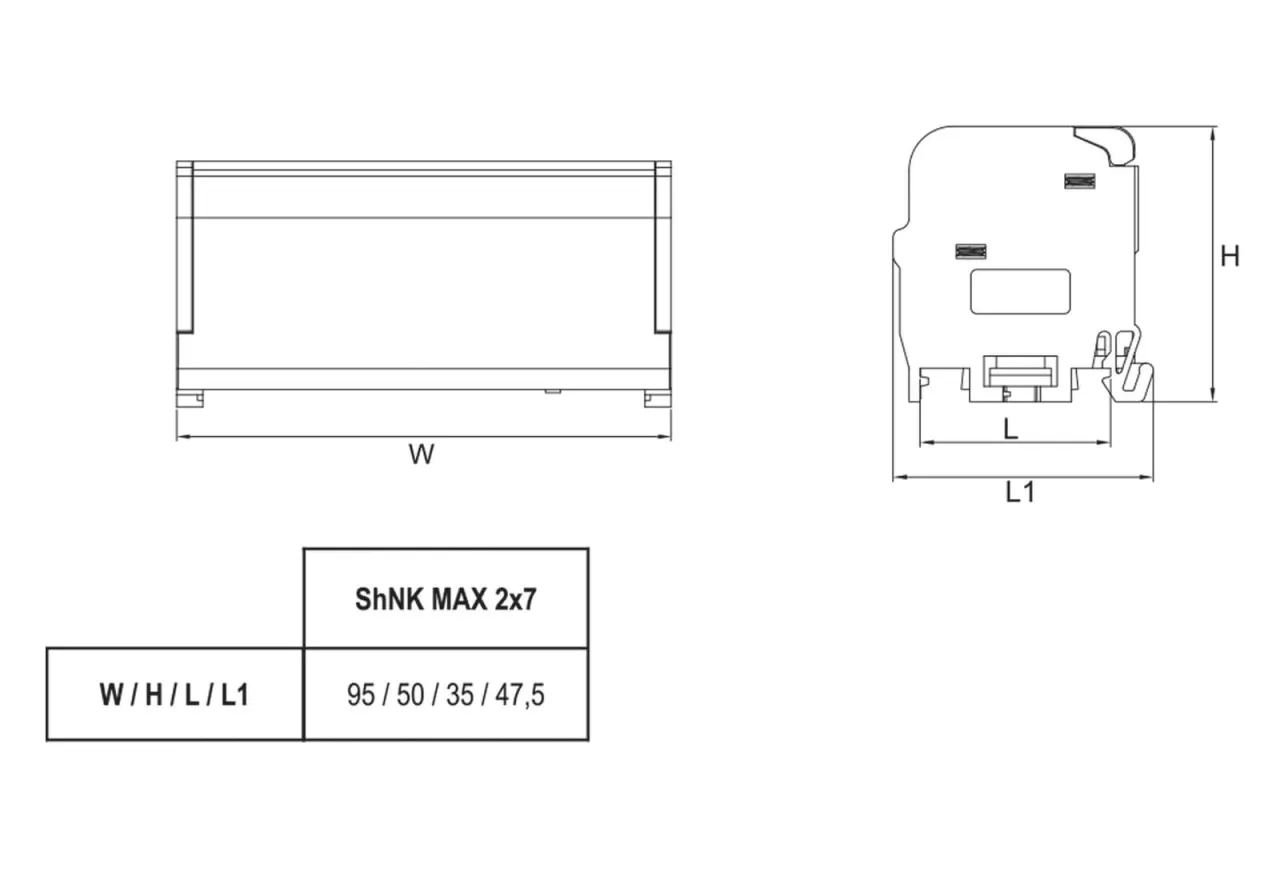 ShNK MAX 2x7 szary_Dwubiegunowy modułowy blok rozdzielczy 2x (5×6 mm² , 1×25 mm², 1×35 mm²), TS35