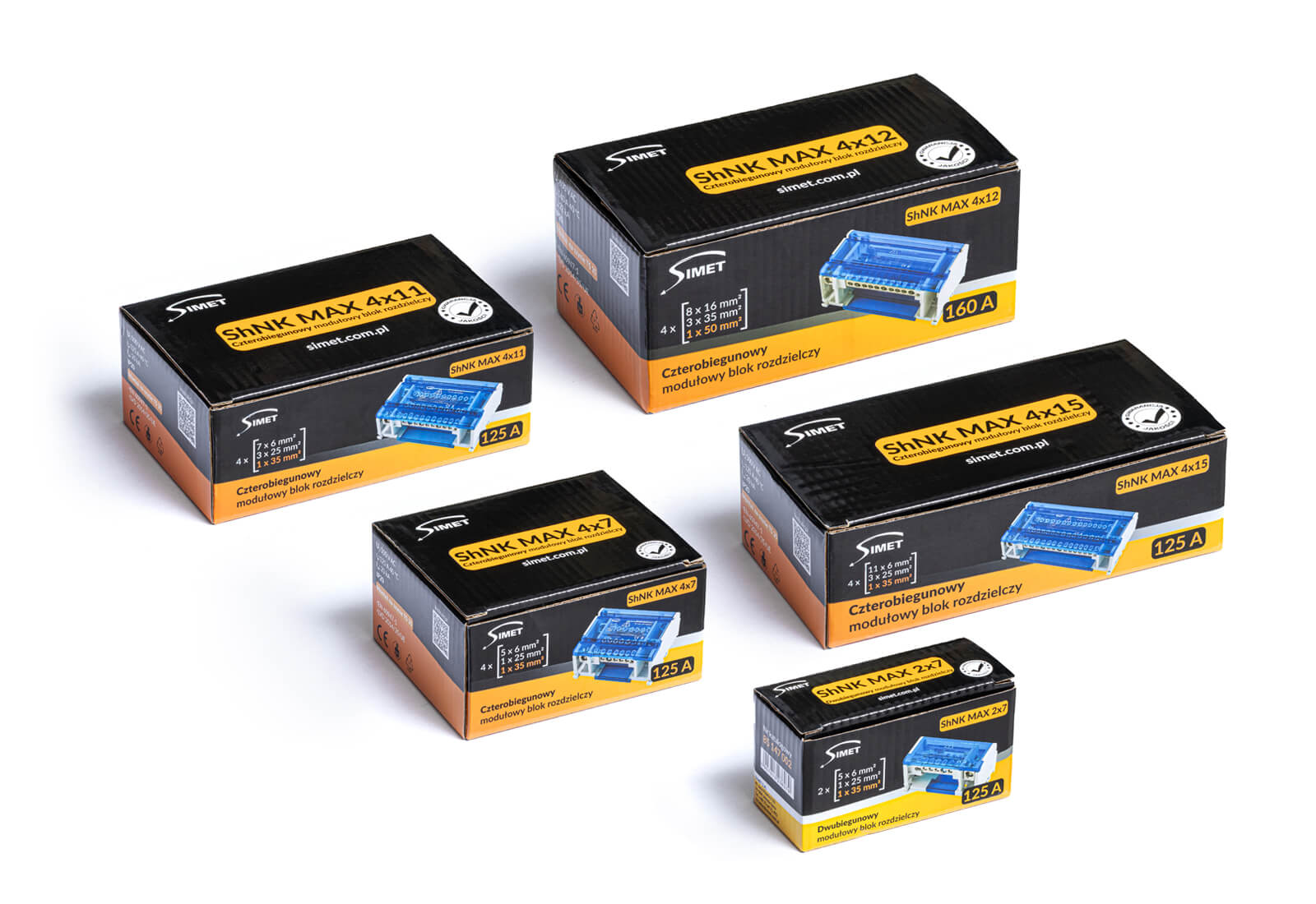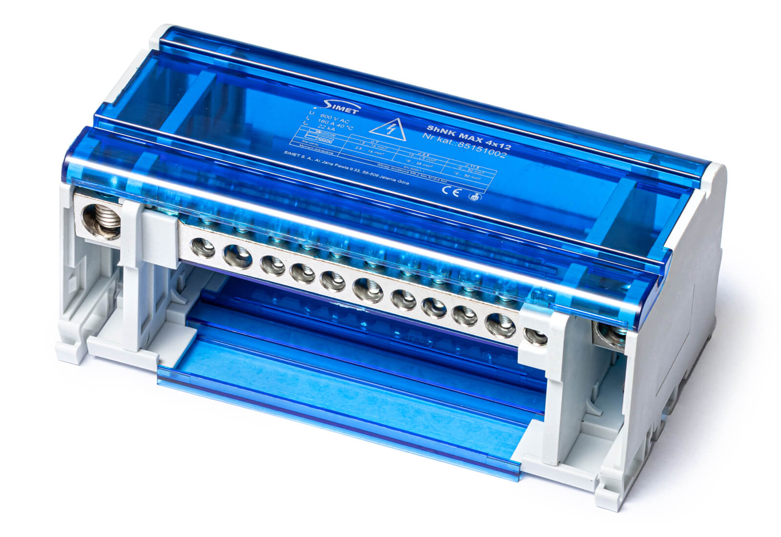 ShNK MAX 4x12 szary_Czterobiegunowy modułowy blok rozdzielczy 4x (8×16 mm² , 3×35 mm², 1×50 mm²), TS35