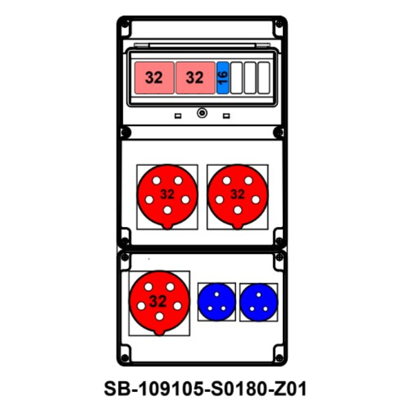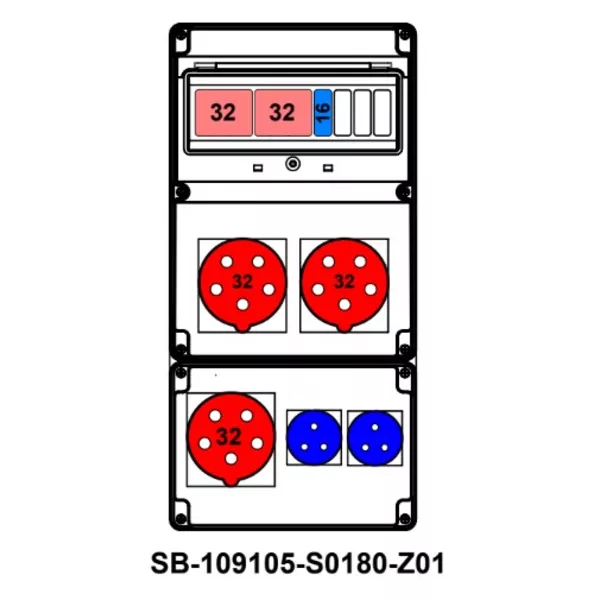 ROZDZIELNICA;2XC32-3P;B16-1P;3X5X32A;2X2P+PE;INA=32A;IP54, SB-109105-S0180-Z01-54