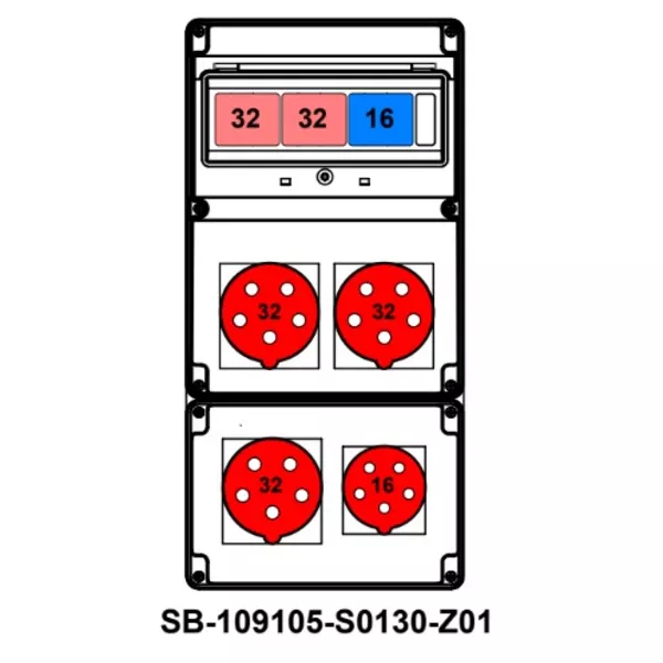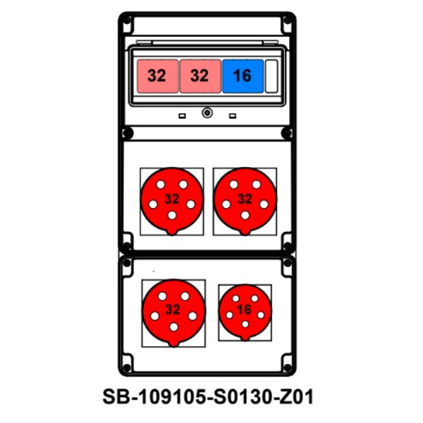ROZDZIELNICA;2XC32-3P;C16-3P;3X5X32A;5X16A;INA=32A;IP54, SB-109105-S0130-Z01-54