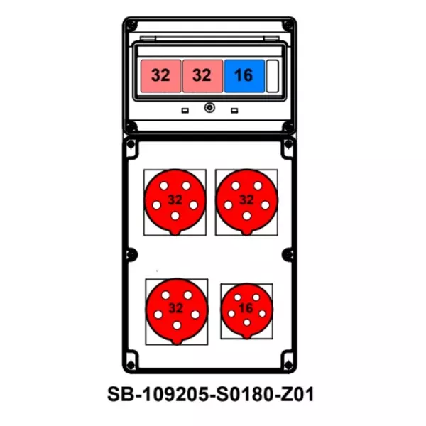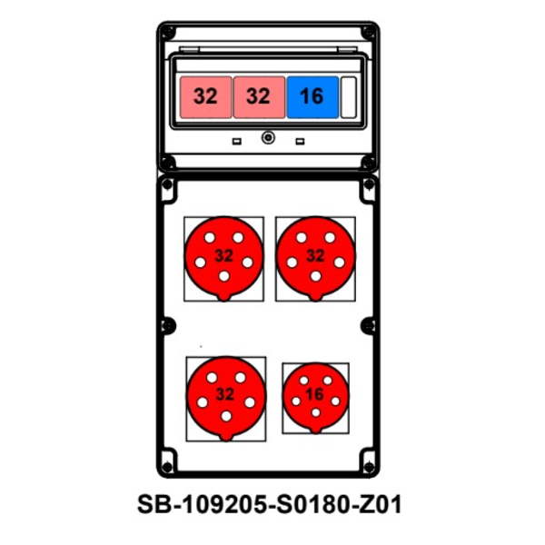 ROZDZIELNICA;2XC32-3P;C16-3P;3X5X32A;5X16A;INA=32A;IP54, SB-109205-S0180-Z01-54