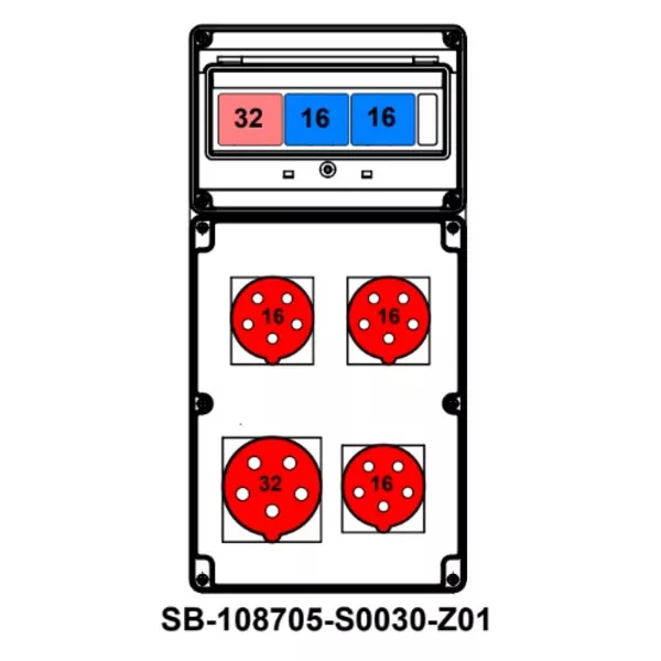 ROZDZIELNICA;C32-3P;2XC16-3P;5X32A;3X5X16A;INA=32A;IP54, SB-108705-S0030-Z01-54