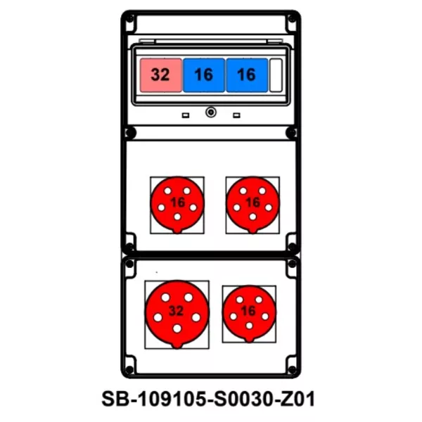 ROZDZIELNICA;C32-3P;2XC16-3P;5X32A;3X5X16A;INA=32A;IP54, SB-109105-S0030-Z01-54