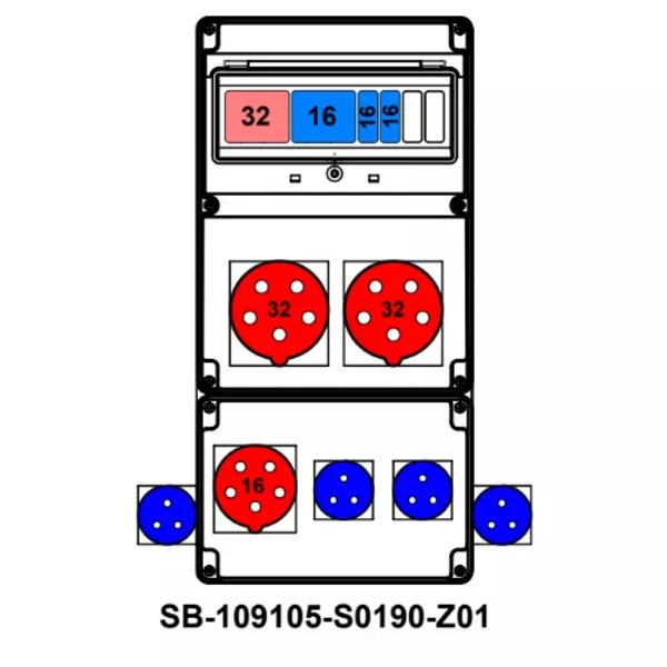 ROZDZIELNICA;C32-3P;C16-3P;2XB16-1P;2X5X32A;5X16A;4X2P+PE;INA=32A;IP54, SB-109105-S0190-Z01-54