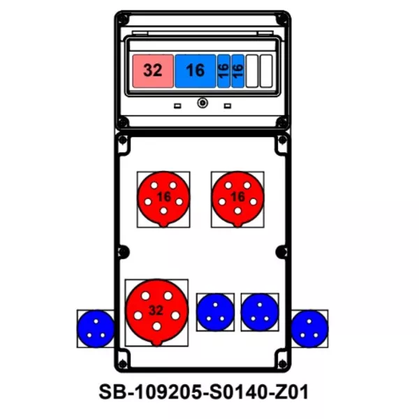 ROZDZIELNICA;C32-3P;C16-3P;2XB16-1P;5X32A;2X5X16A;4X2P+PE;INA=32A;IP54, SB-109205-S0140-Z01-54