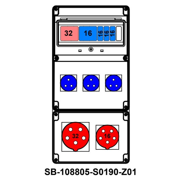 ROZDZIELNICA;C32-3P;C16-3P;3XB16-1P;5X32A;5X16A;3X2P+PE;INA=32A;IP54, SB-108805-S0190-Z01-54