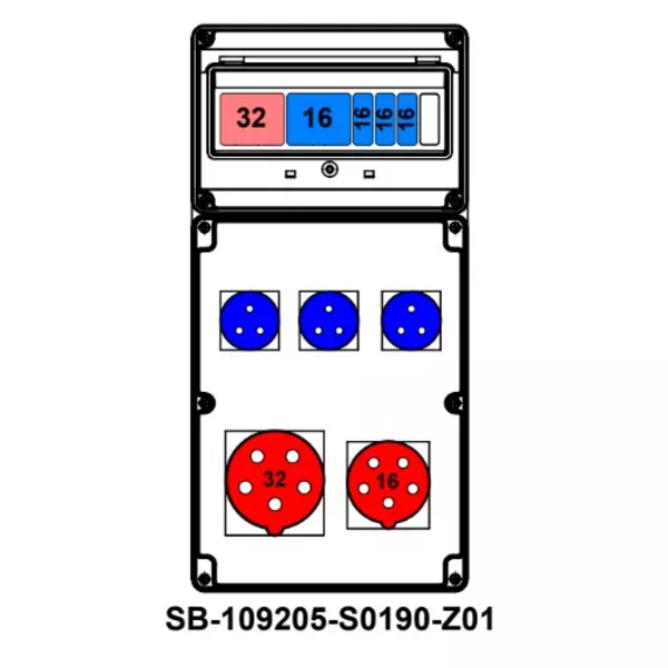 ROZDZIELNICA;C32-3P;C16-3P;3XB16-1P;5X32A;5X16A;3X2P+PE;INA=32A;IP54, SB-109205-S0190-Z01-54