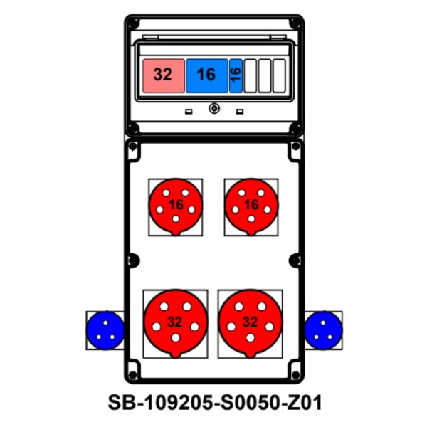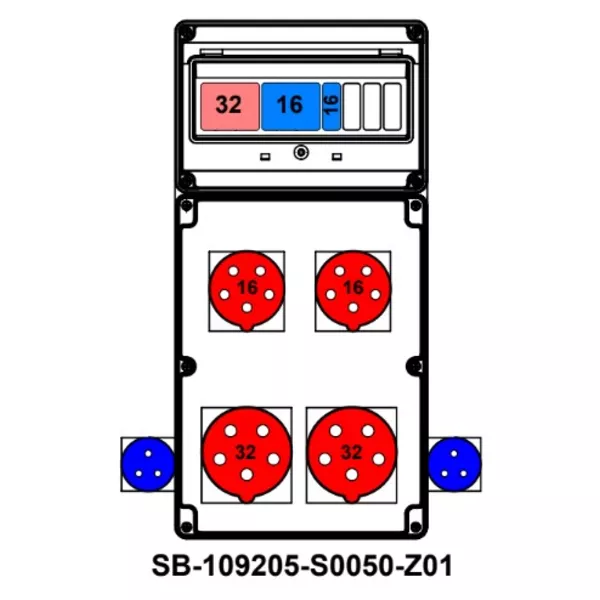 ROZDZIELNICA;C32-3P;C16-3P;B16-1P;2X5X32A;2X5X16A;2X2P+PE;INA=32A;IP54, SB-109205-S0050-Z01-54