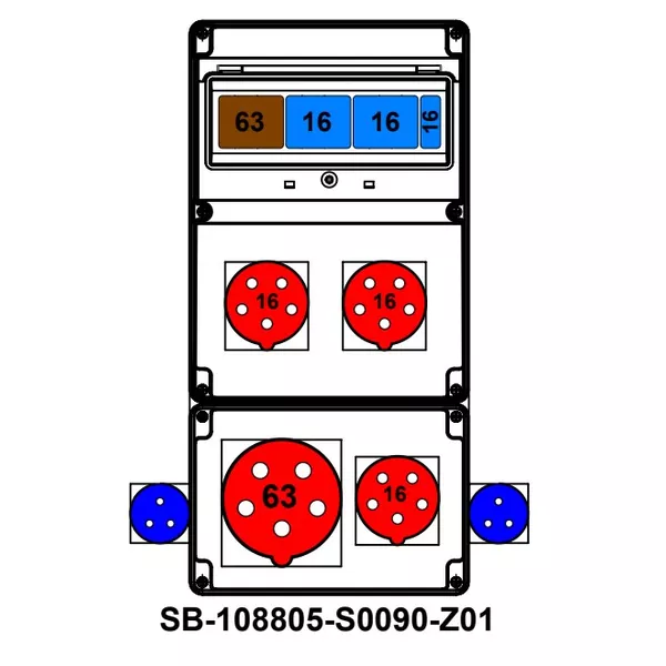 ROZDZIELNICA;C63-3P;2XC16-3P;B16-1P;5X63A;3X5X16A;2X2P+PE;INA=63A;IP54, SB-108805-S0090-Z01-54