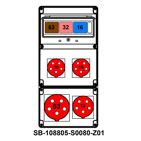 ROZDZIELNICA;C63-3P;C32-3P;C16-3P;5X63A;5X32A;2X5X16A;INA=63A;IP54, SB-108805-S0080-Z01-54