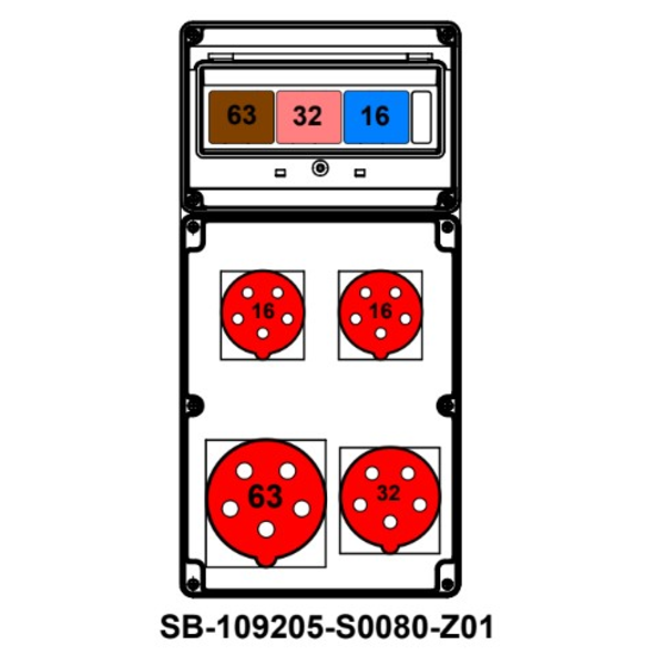 ROZDZIELNICA;C63-3P;C32-3P;C16-3P;5X63A;5X32A;2X5X16A;INA=63A;IP54, SB-109205-S0080-Z01-54