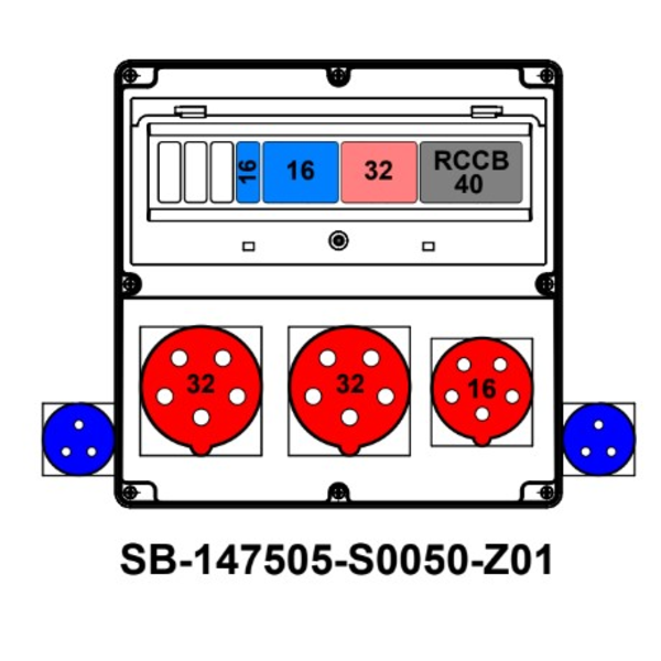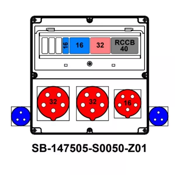 ROZDZIELNICA;RCCB40A;C32-3P;C16-3P;B16-1P;2X5X32A;5X16A;2X2P+PE;INA=32A;IP54, SB-147505-S0050-Z01-54