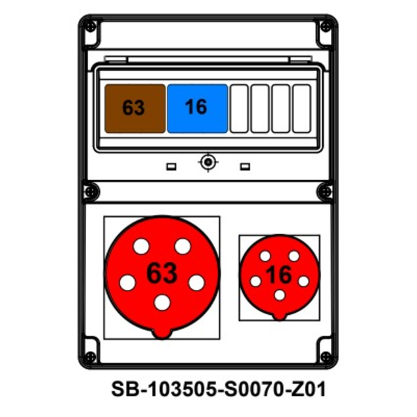 ROZDZIELNICA;C63-3P;C16-3P; 5X63A;5X16A;INA=63A;IP54