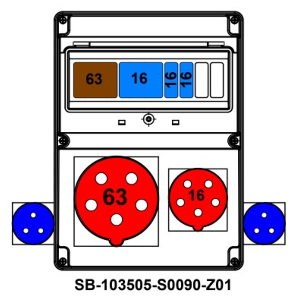 ROZDZIELNICA;C63-3P;C16-3P;2XB16-1P; 5X63A;5X16A;2X2P+PE;INA=63A;IP54
