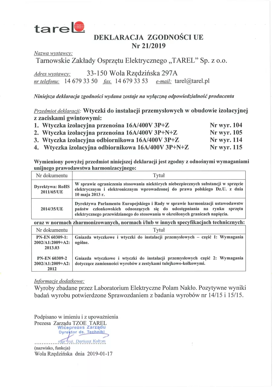 Dostawca | Tarnowskie Zakłady Osprzętu Elektrycznego TAREL sp. z o.o. |