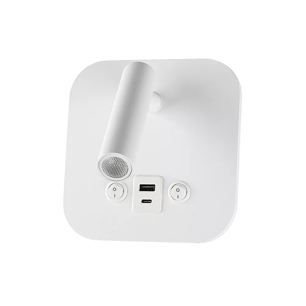 8W Hotelowa lampa ścienna USB / Chip CREE / Barwa: 3000K / Kolor: Biały