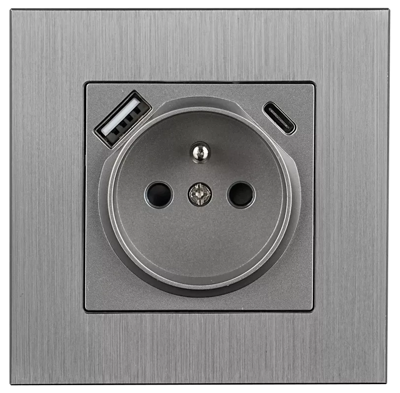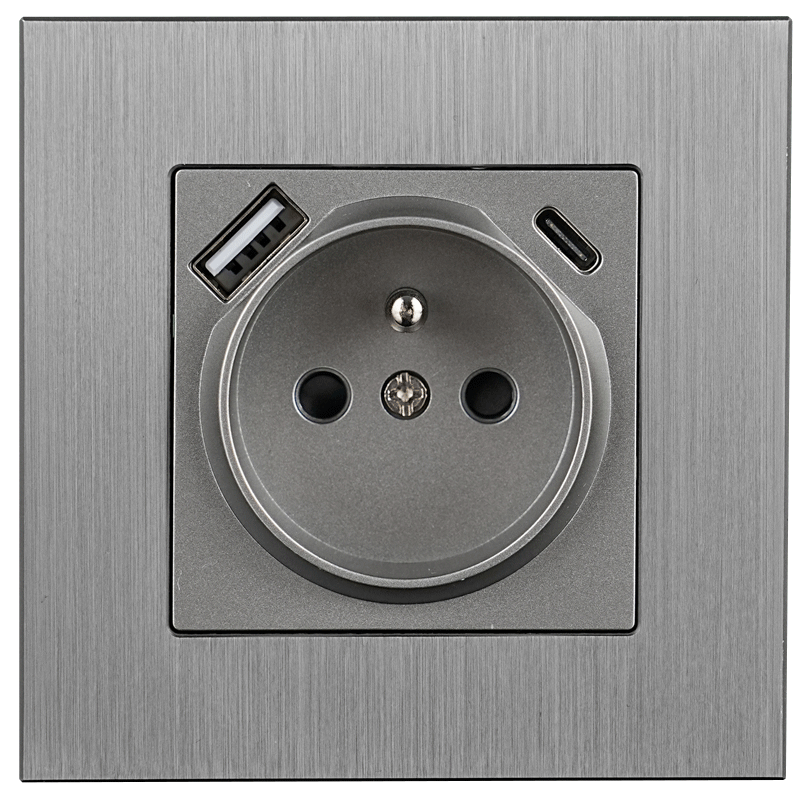 ViP Plakietka gniazda pojedynczego z uziemieniem USB A+C czarna