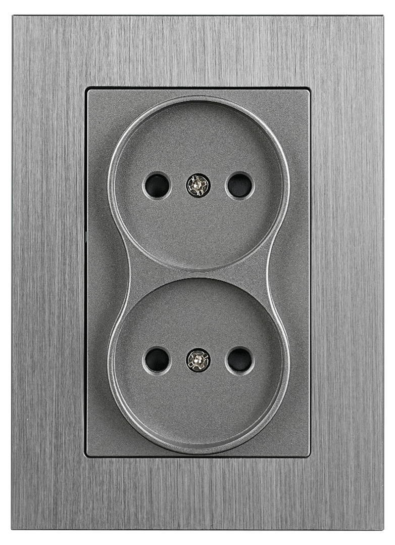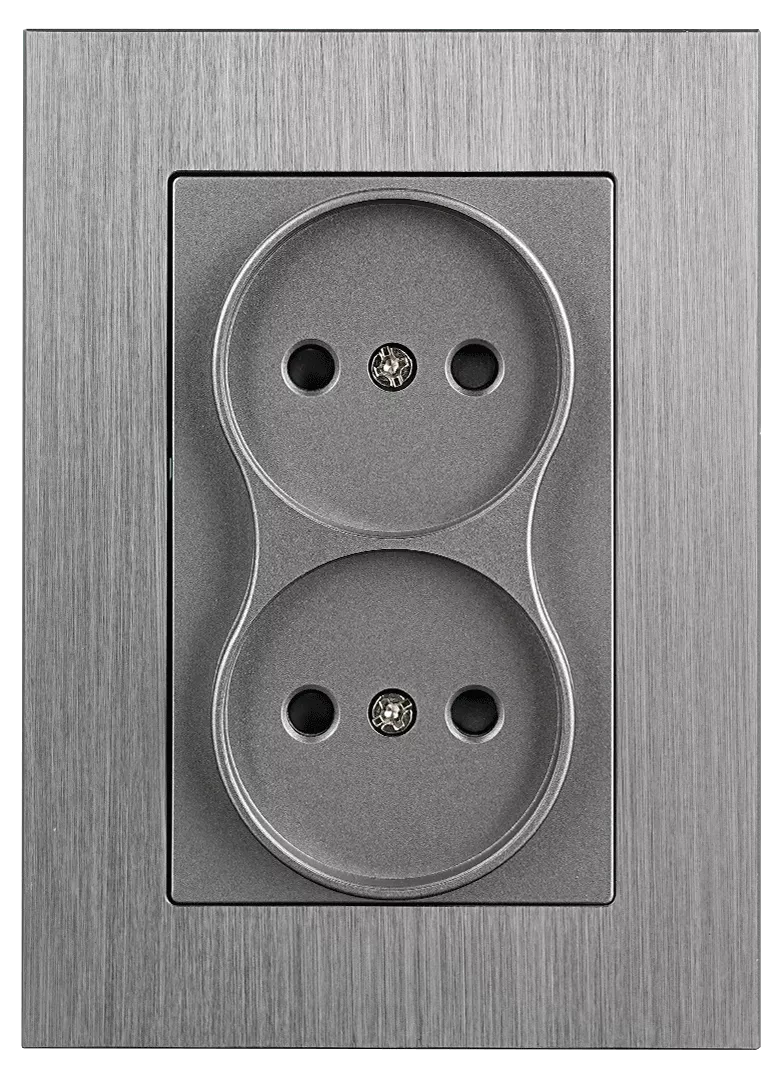 ViP Plakietka gniazda podwójnego bez uziemienia (2x2P) srebrna