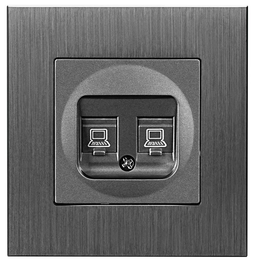 ViP Plakietka gniazda komputerowego podwójnego srebrna