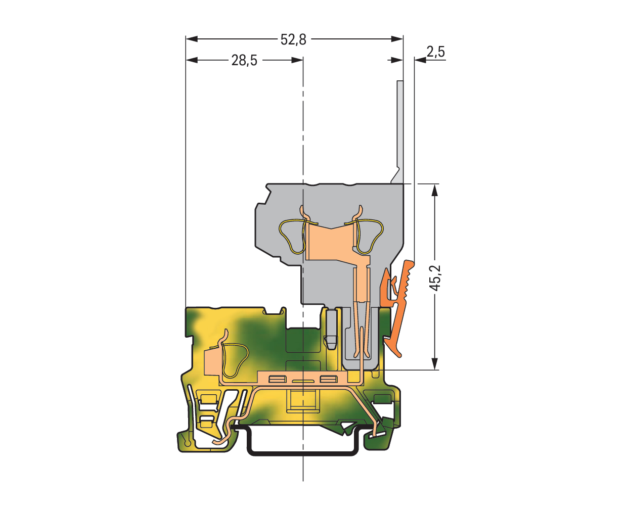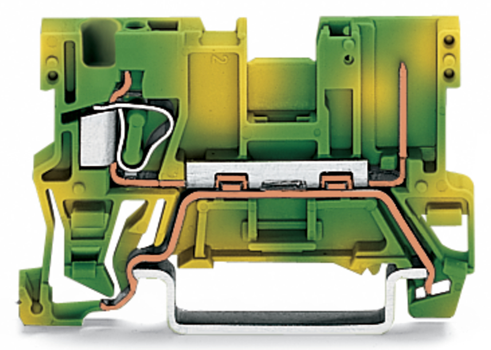 złączka bazowa PE 1-przewodowa/1-pinowa; 4 mm²; na szynę TS 35 x 15 i 35 x 7,5; CAGE CLAMP®; 4,00 mm²; żółto-zielony