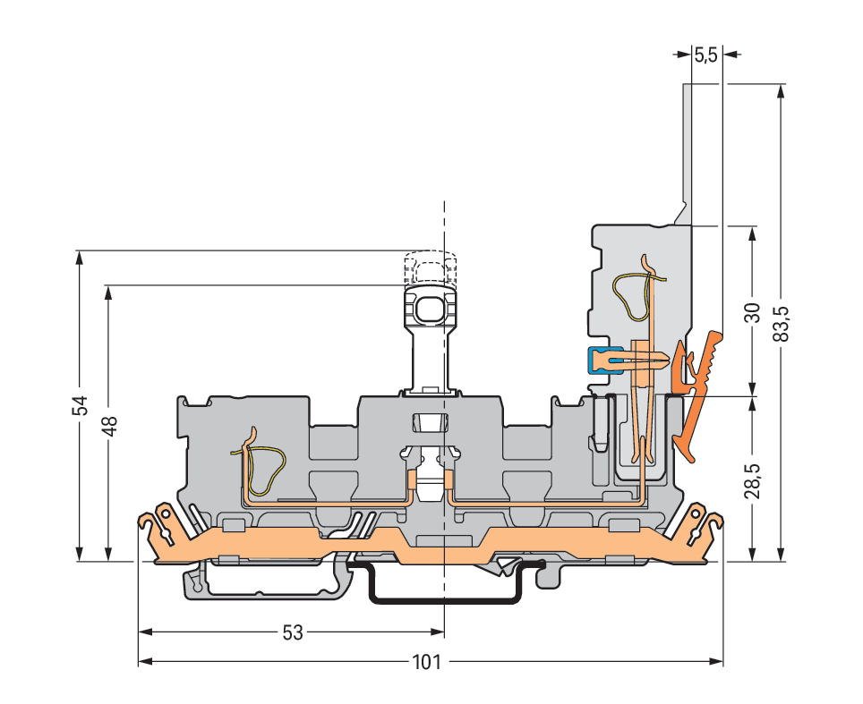 złączka bazowa rozłączalna 1-przew/1-pinowa; z szyną ekranową; z podwójnym mostkowaniem; na szynę TS 35 x 15 i 35 x 7,5; 4 mm²; CAGE CLAMP®; 4,00 mm²; szary