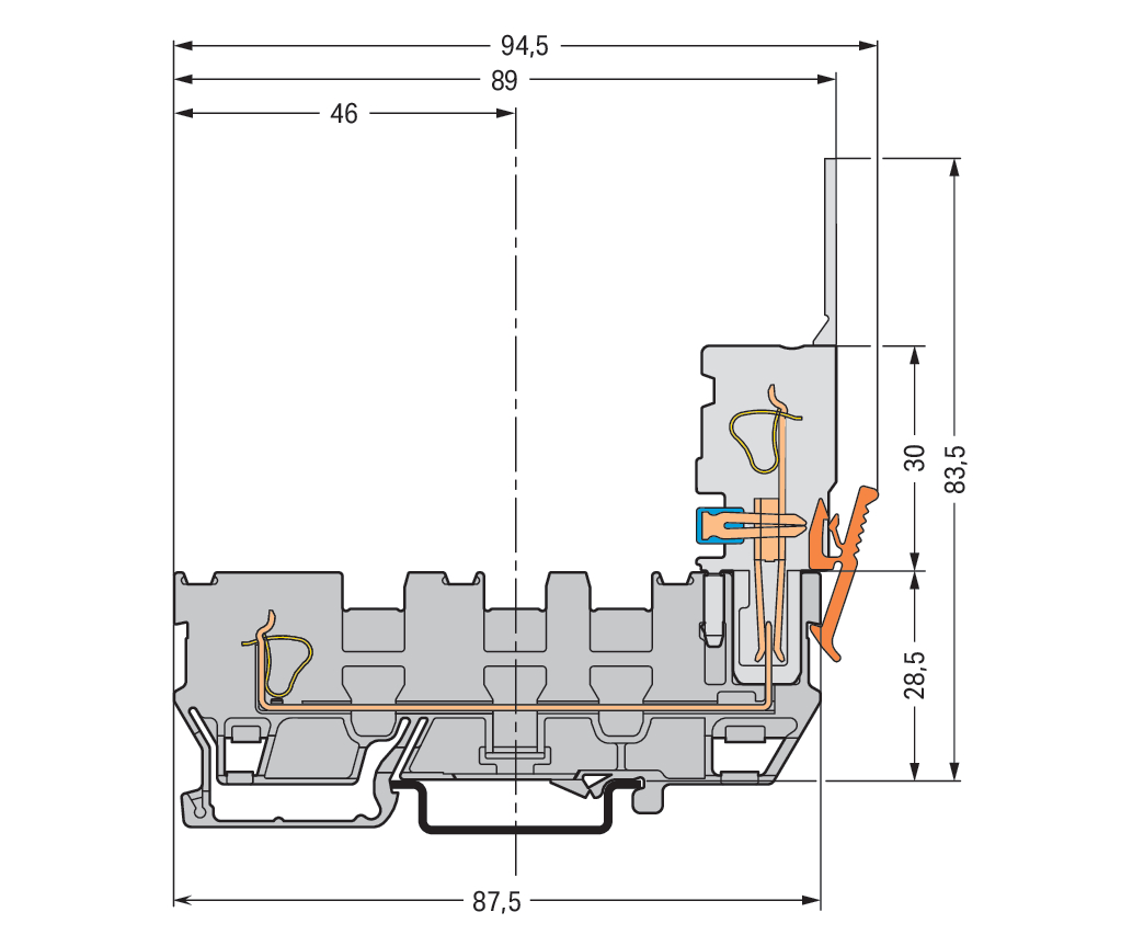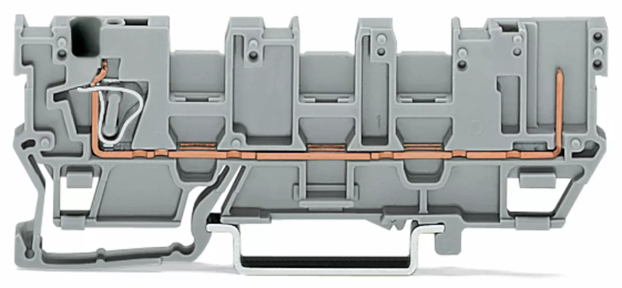 złączka bazowa rozłączalna 1-przew/1-pinowa; z potrójnym mostkowaniem; na szynę TS 35 x 15 i 35 x 7,5; 4 mm²; 4,00 mm²; szary