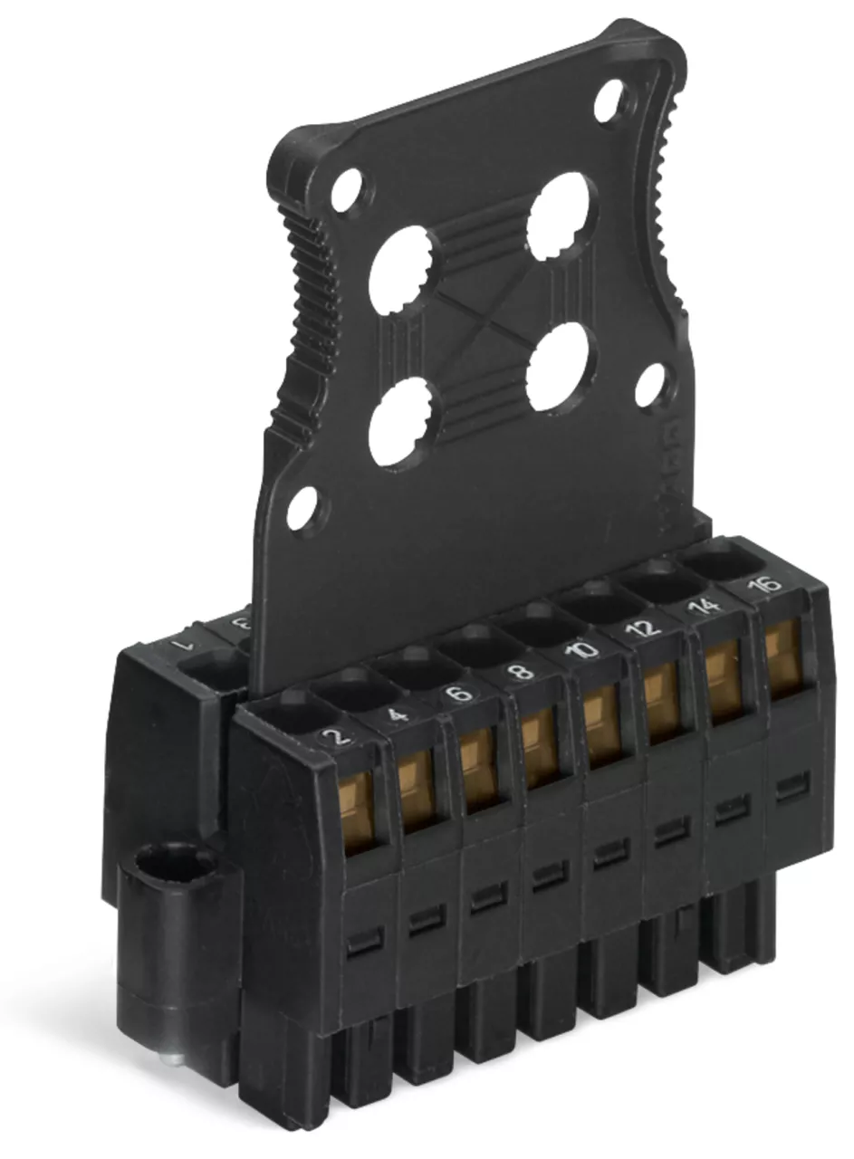 gniazdo 1-przewodowe, 2-rzędowe; CAGE CLAMP®; 1,5 mm²; raster 3,5 mm; 20-bieg.; 100% ochrona przed błędnym połączeniem; śrubowy uchwyt montażowy; płytka odciążająca przewody; z nadrukiem bezpośrednim; 1,50 mm²; czarny