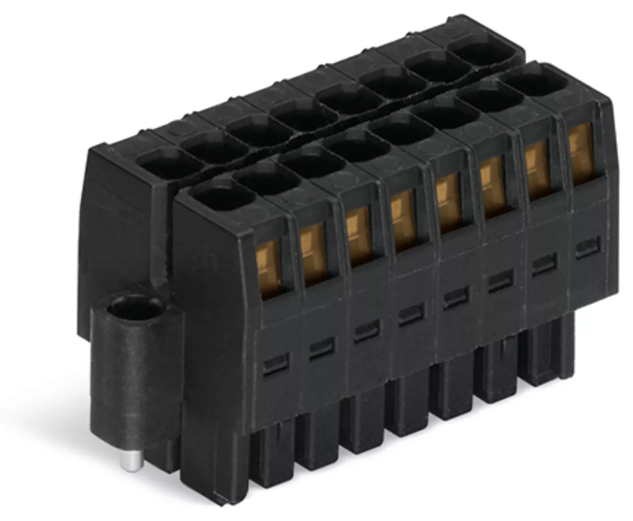 gniazdo 1-przewodowe, 2-rzędowe; CAGE CLAMP®; 1,5 mm²; raster 3,5 mm; 22-bieg.; 100% ochrona przed błędnym połączeniem; śrubowy uchwyt montażowy; z nadrukiem bezpośrednim; 1,50 mm²; czarny