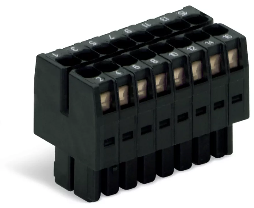 gniazdo 1-przewodowe, 2-rzędowe; CAGE CLAMP®; 1,5 mm²; raster 3,5 mm; 24-bieg.; 100% ochrona przed błędnym połączeniem; z nadrukiem bezpośrednim; 1,50 mm²; czarny